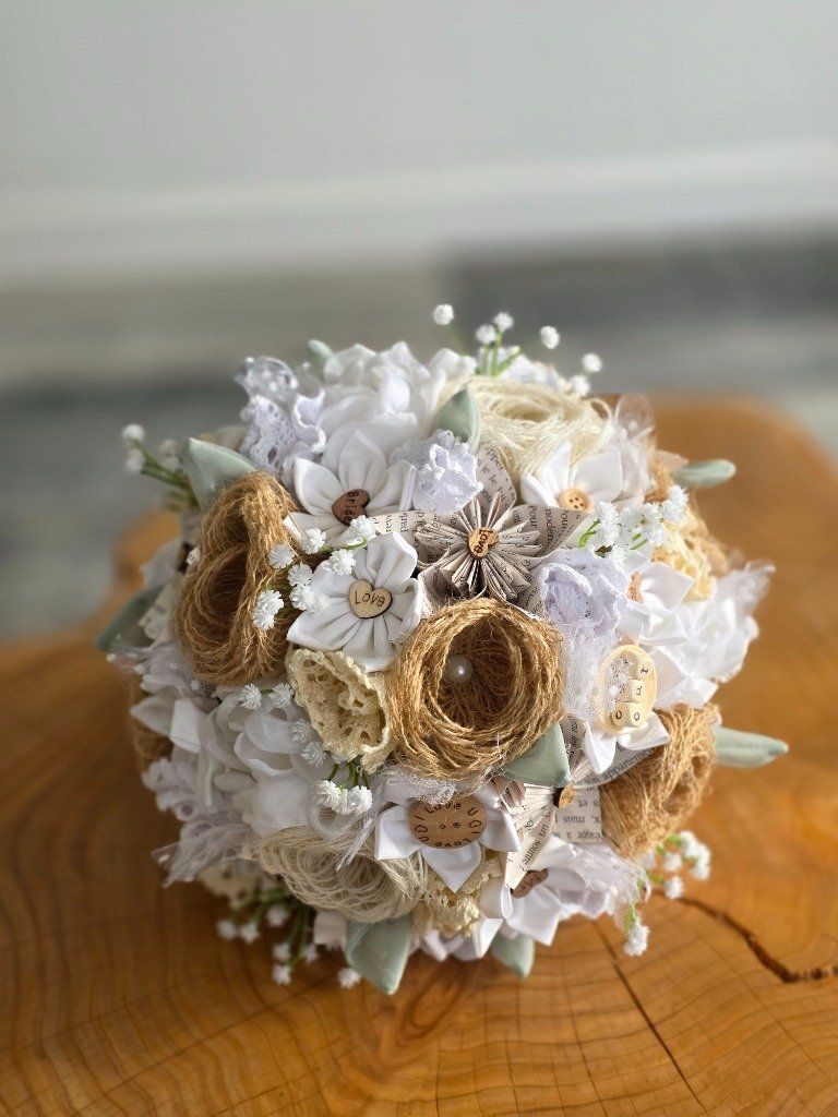 Bouquet de mariée champêtre Bouquet de mariée original Bouquet de mariée en tissu Bouquet alternatif mariage Bouquet de mariée éternel Bouquet sans fleurs fraîches