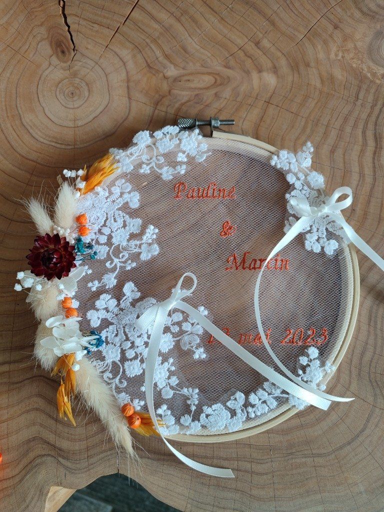 Ref 17X Coussin d'alliance rose dentelle theme papillons dentelle rose Coussin ivoire fleur de cerisier, broderie Coussin 19x19cm 40€